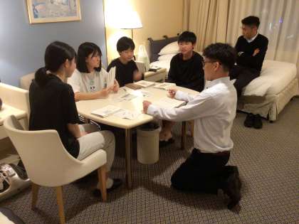 ひと息ついたところで、部屋長会を行いました。今日一日の反省をして、明日にそなえます。