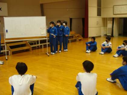 決起集会の後、赤団、白団に分かれて決意を発表し、練習に取り組みました。
