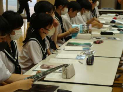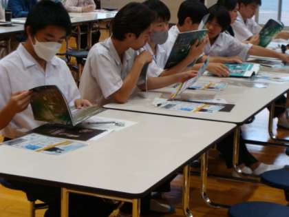 お越しくださった高校の先生から、パンフレットやパワーポイントを使った分かりやすい説明がありました。