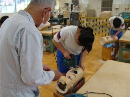 地域講師をお招きし、ランプシェード作りをしています。