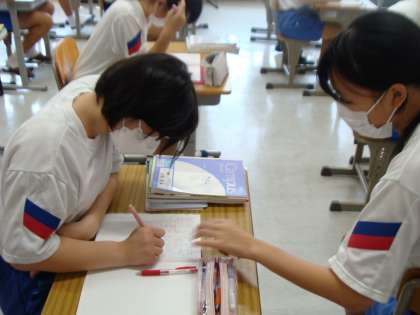 他の生徒にたずねたり、確認し合ったりしながら学習を進めています。