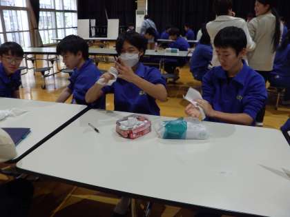 日赤の方をお招きし、お年寄りにハンドマッサージをするときのコツや留意点を教えていただき、練習をしました。