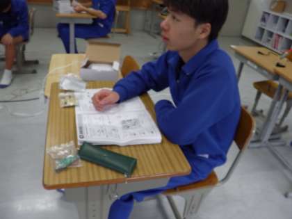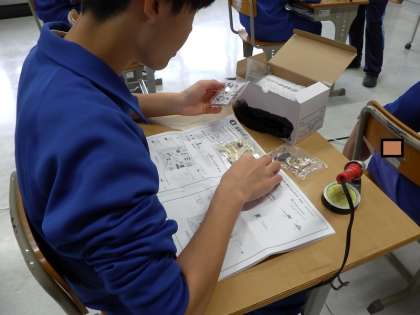 2年生の技術科では、ダイナモワイヤレスラジオを作成しています。