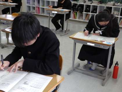 学年末テストの1日目です。