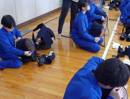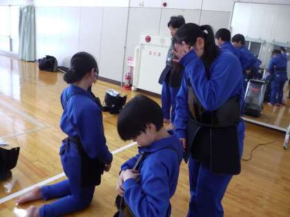 手ぬぐいのつけ方、紐の結び方などを教わっています。