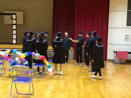 6時間目から帰りの部活動の時間を使って行ってきた「3年生を送る会」の準備期間も、いよいよ最終日です。それぞれの係の最終チェックを行いリハーサルを始めます。各係の役目をしっかりと果たし、スムーズな進行でした。いよいよ、3月3日(月)の午後が本番です。学校公開日ですので、多くの保護者が参観してくださるのを楽しみにしています。
