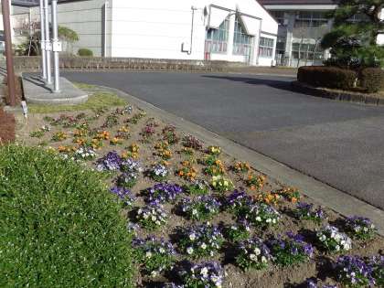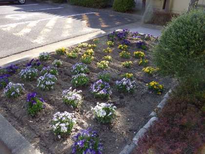 玄関前のパンジーも、きれいに咲いています。