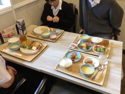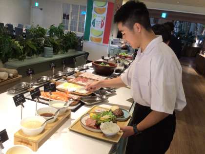 朝食バイキング、盛り付けが上手です。