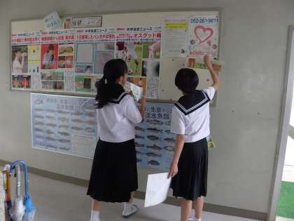 取り組みの進捗状況を確認したり、掲示物の張替えをしたりしています。