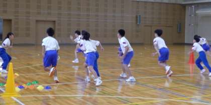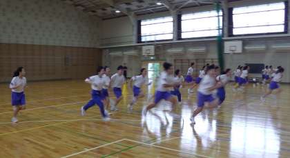 委員会の生徒が企画した「〇×クイズ」に挑戦しています。