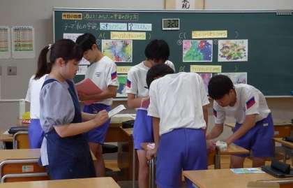 3年生の美術では、教員が互いの授業を見合う授業研究がありました。