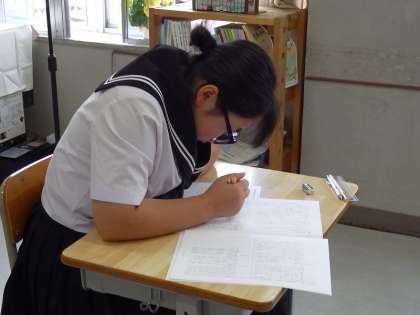 どの生徒も真剣なまなざしでテストに向き合っています。