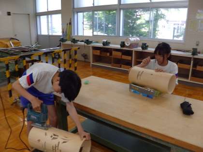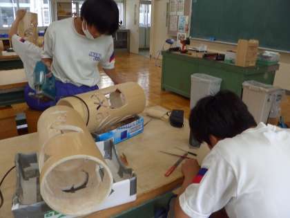 稲武の木を使ったランプシェードを作成しています。
