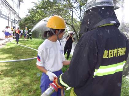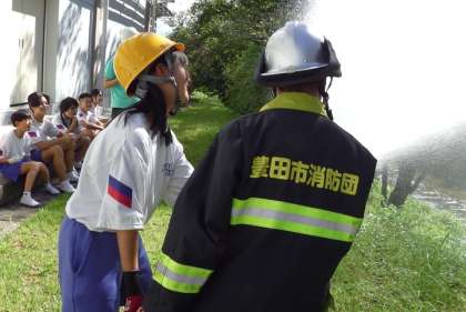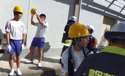 中学校付近の自治区、消防署、消防団、稲武支所と合同の防災訓練を行いました。