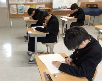 どのクラスも、集中して答案用紙に向かっている様子が見られます。