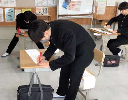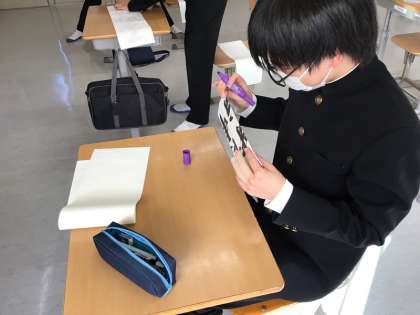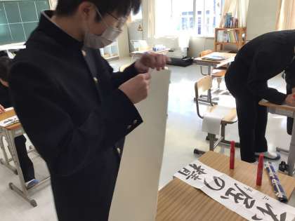 1月に行われる書初めに向けて、準備をしています。