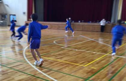 12/4(木)、体育科の様子です。ベースボール5を行っています。