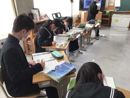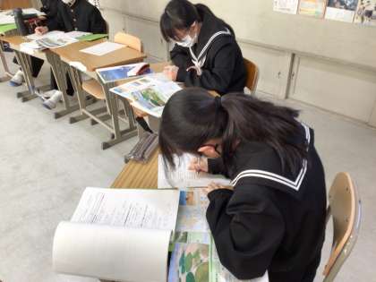 この時間はまとめで、自分の振り返りをプリントに記入しています。
