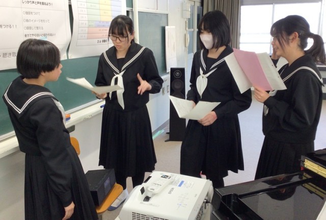各パートに分かれて、卒業式で歌う曲を練習しています。