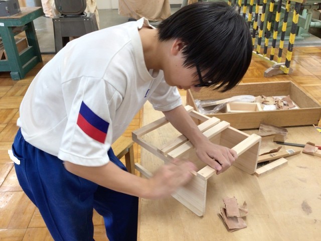 注意して釘を打ったり、やすりで丁寧に表面を磨いたりしています。