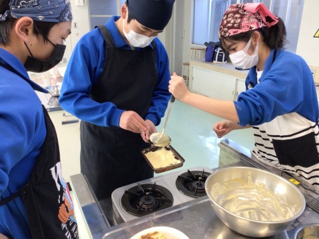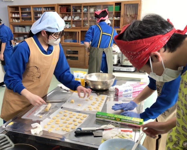 班に分かれて、クッキーやパンケーキなどを作っています。