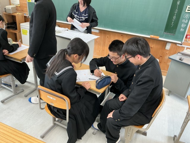 2年生の授業の様子です。掲示物を作ったり、新入生歓迎会の準備を進めたりしていました。