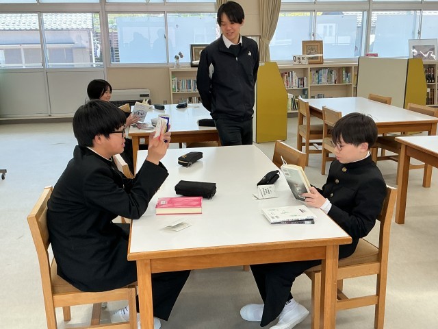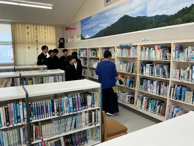 1年生の図書館利用指導として、図書館司書さんから図書館の配架や貸し出し方法や返却方法を教えてもらいました。