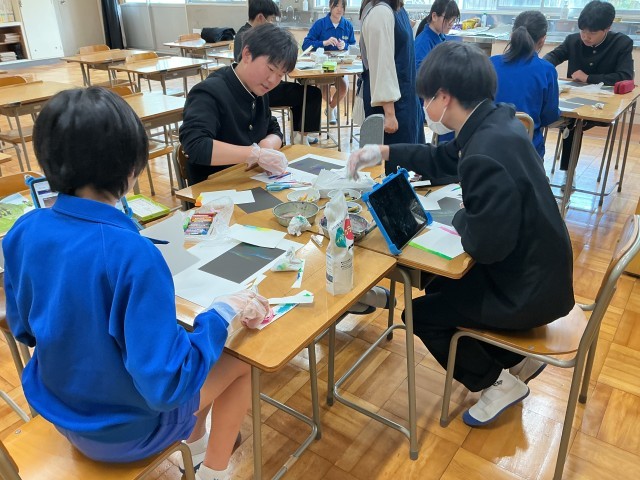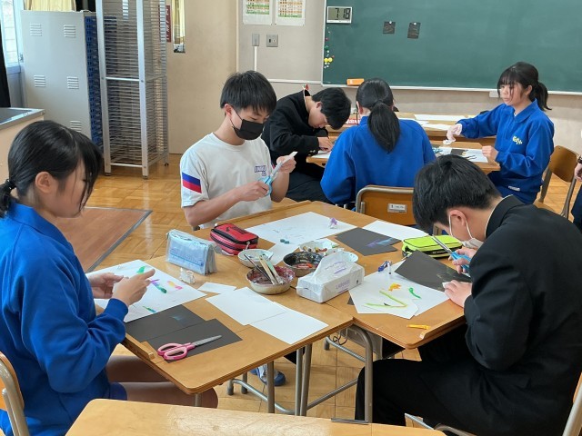 美術ではクレヨンと黒い画用紙を使って、オーロラを表現しています。