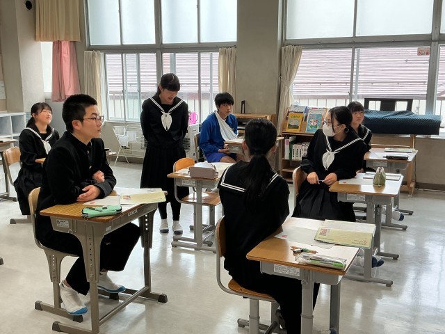 道徳では、成長のためには成功と失敗のどちらが必要かというテーマについて、経験をもとに各自の意見を伝えあっています。