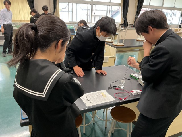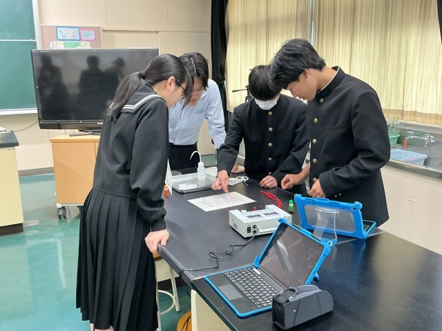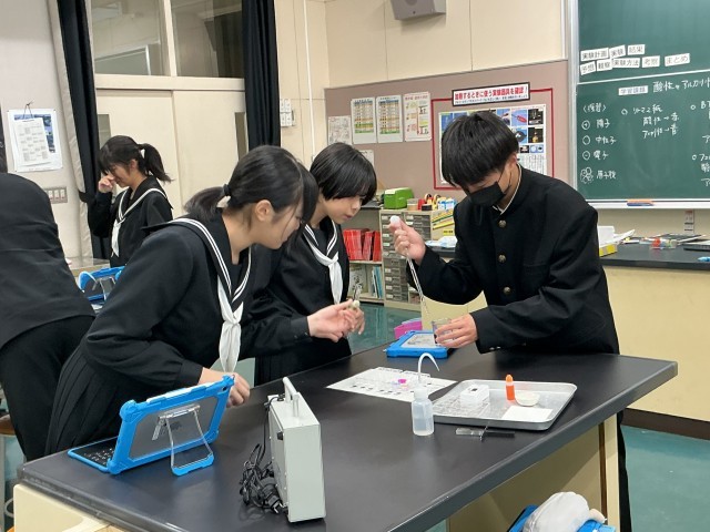 理科では酸性とアルカリ性の水溶液の違いを実験を通して確認しています。