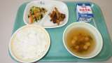 本日の献立は「ごはん、とり肉のカレー揚げ、ゆかりあえ、けんちん汁、牛乳」計809...