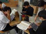 国語や英語の様子です。 グループになって意見交換をしています。 タブレットも使っ...