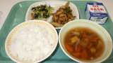 本日は、豚肉のしょうが炒め、小松菜の和え物、八杯汁、牛乳、ごはんでした。今週は日...