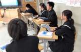 1年生の英語科の様子です。 ALTに説明をしている様子です。 近くの人と説明の仕...