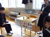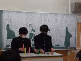 1年生の生徒が、美術の時間に制作したものを発表しに来ました。 職員室にいる教師に...