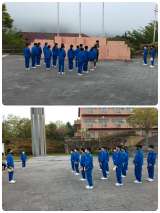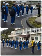 今日の午前中の活動は長縄跳びと、行進の練習です。 2つの班に分かれて出来栄え対決...
