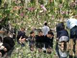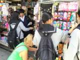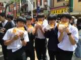 おみくじをひいています。 大吉の人もいますが、凶の人がおおそうです。
