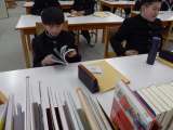 1年生が図書館の利用について学んでいます。 司書さんの説明を熱心に受けたり、分類...