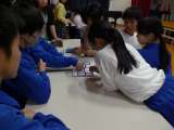 お宝組み立ての様子です。 校訓が書かれたボードをきれいに飾りつけしています。