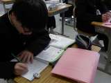 1年生の英語の様子です。 学んだ文法などをノートに記しています。 集中している様...