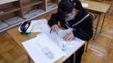 1年生は、美術科で凹凸のあるものの上に紙を置いて鉛筆でこすって描いたものを、切...