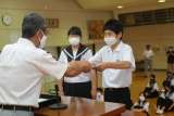 職場体験を終えた2年生に「お疲れさまです」、修学旅行から帰ってきた3年生に「お...