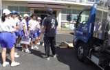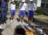 中学校付近の自治区、消防署、消防団、稲武支所と合同の防災訓練を行いました。 放水...
