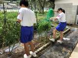 2年生が、技術の時間に栽培園の片づけを行いました。 大きなオクラがとれたり、トウ...