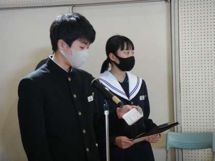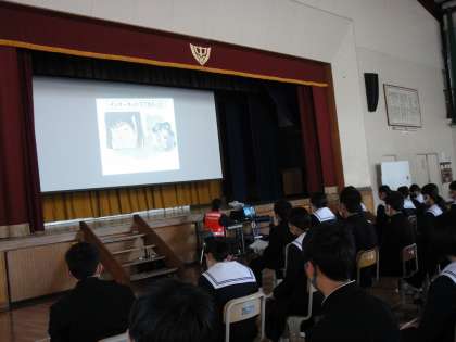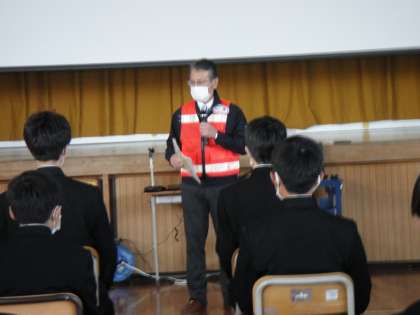豊田警察署のスクールサポーター・青少年補導育成委員の方々に、サイバー犯罪及び薬物防止についての講話をしていただきました。全員真剣な表情で聞き、犯罪の恐ろしさを実感するとともに今後の生活に生かしていこうと思いました。
