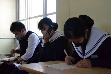 職場体験学習の事前訪問に向けて、各事業所に電話で連絡をしました。緊張しながらもしっかりと事前訪問のお願いをすることができました。