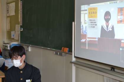 生徒総会 公開日 2021/05/14 更新日 2021/05/14 学校全体の様子 リモートで各教室をつなぎ生徒総会を行いました。井郷中学校をさらによい学校にするために、積極的な意見交換が行われました。今後は、今回承認されたことを全校生徒で実践していきます。