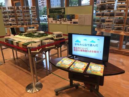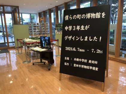 昨年度の3年生が、美術科の授業で完成させた博物館のデザイン設計作品(MY TOWN MUSEUM)が、豊田市役所東庁舎1階ロビーに展示されています。「こんな博物館にしたいな」という一人一人の願いが、豊田市民に発信されています。