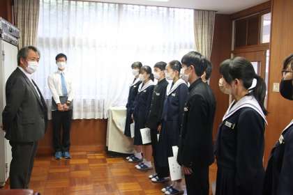 後期委員会の委員長・副委員長の認証式を行いました。各委員会の取組や活動を通して井郷中学校の生徒の皆さんがさらに充実した学校生活を送ることができるような実践を期待しています。