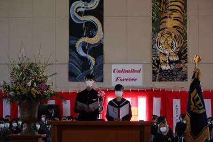 第36回卒業証書授与式 公開日 2022/03/04 更新日 2022/03/04 学校全体の様子 第36回卒業生149名の新たな門出を祝福するかのような春の日差しに恵まれた佳き日に卒業証書授与式が厳粛に挙行されました。井郷中学校での思い出を胸に、一人一人の次のステージでの活躍を期待しています。ご卒業おめでとうございます。